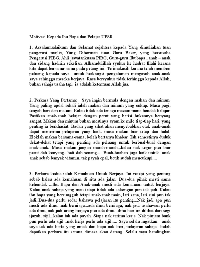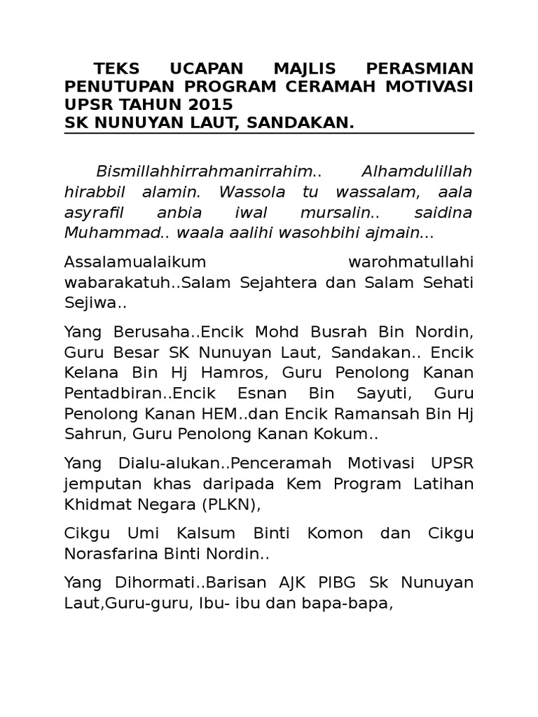 Teks Ucapan Pengerusi Majlis Program Motivasi Kecemerlangan Upsr Pdf