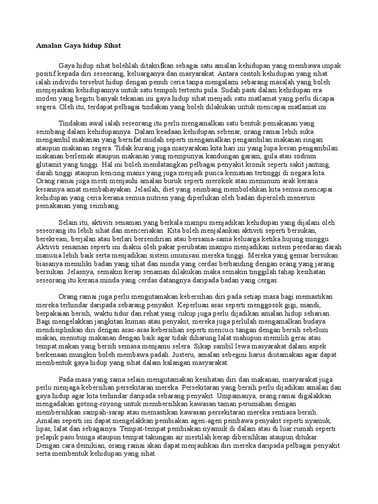 Contoh Karangan Amalan Gaya Hidup Sihat Pdf